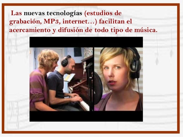 . Las nuevas tecnologías (estudios de grabación, MP3, internet…) facilitan el acercamiento y difusión de todo tipo de música.