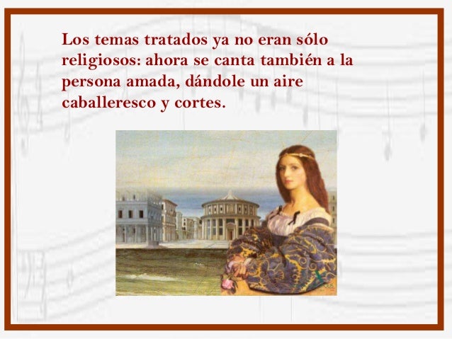 Los temas tratados ya no eran sólo religiosos: ahora se canta también a la persona amada, dándole un aire caballeresco y cortes.